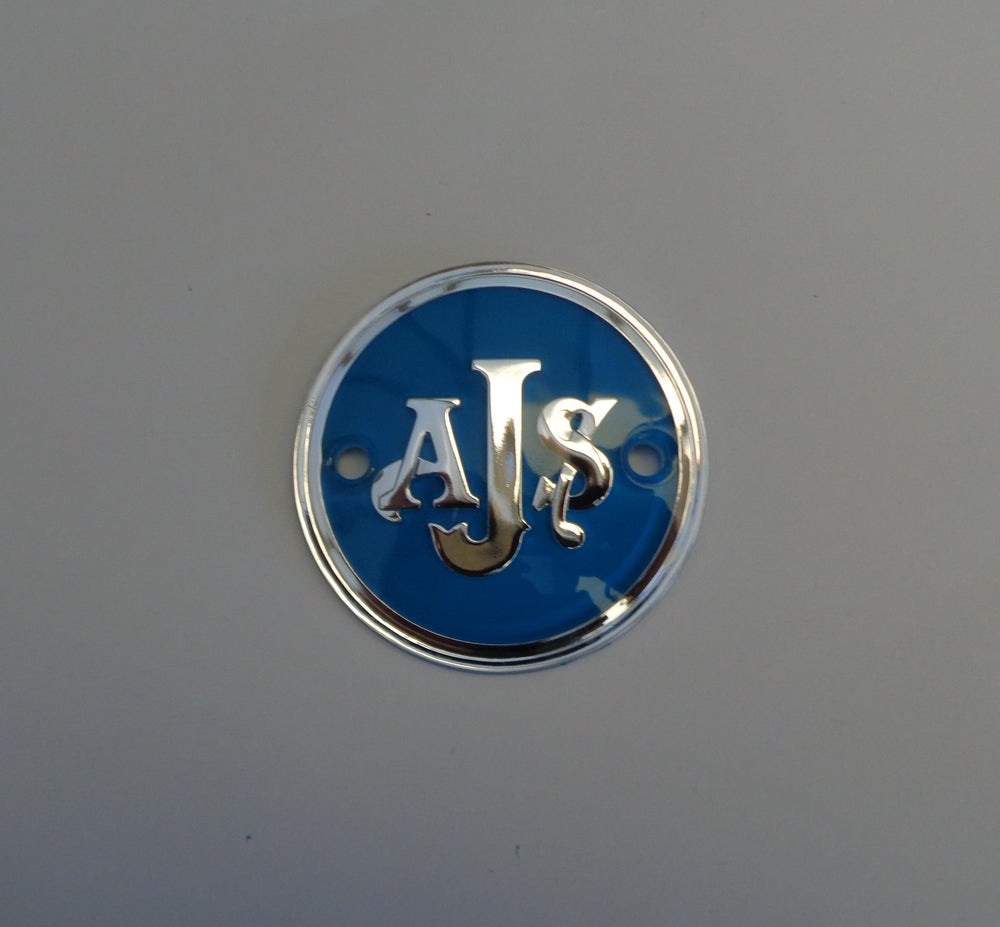 AJS BADGES PAIR "BRAND NEW" STUNNING FINISH OR NEW PRODUCT RELEASE